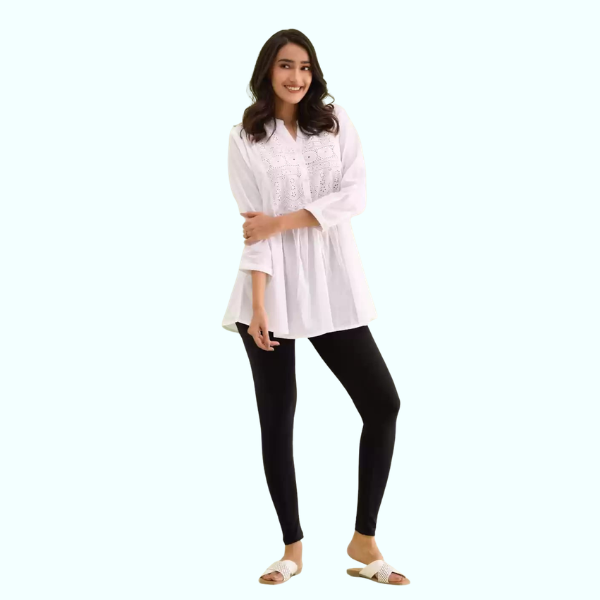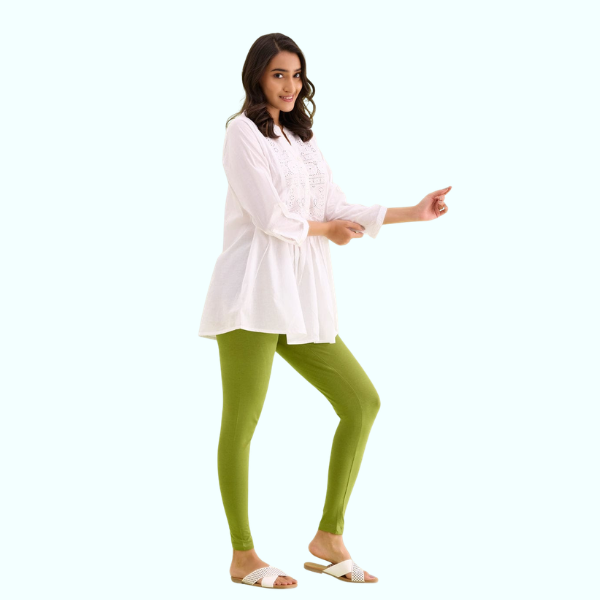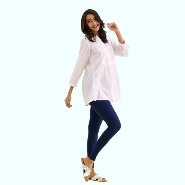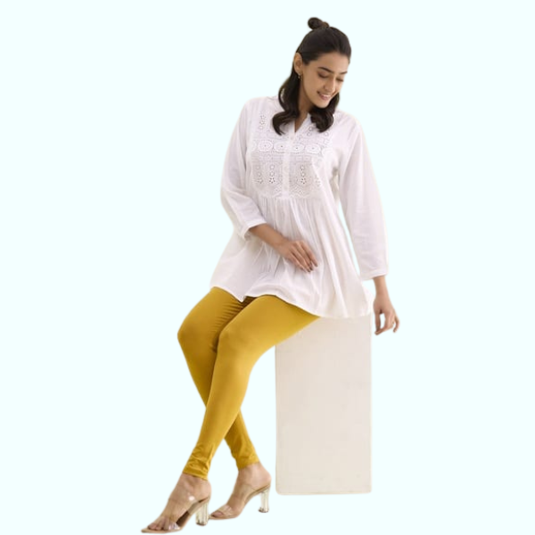 Pair these ankle leggings with long kurtis or short tops for a smart and trendy look. Choose from bold colors for a statement style or neutrals for everyday elegance.