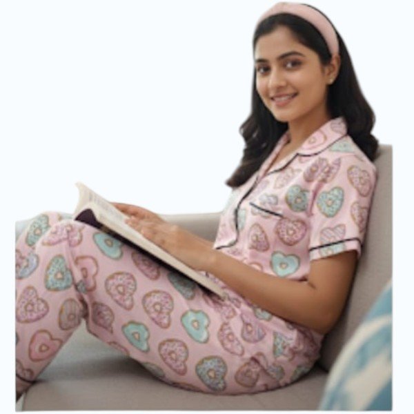Be the first to review “Women Night Wear Pajama Set – Hearts Pattern”